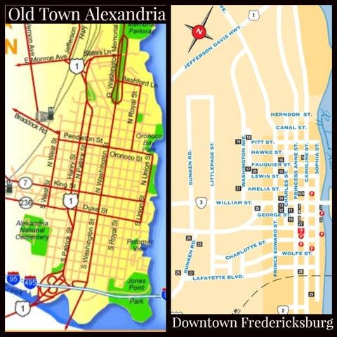 For instance, the layout of Downtown Fredericksburg mirrors the layout of Old Town Alexandria almost exactly. The only difference is in the buildings, architecture, and street names used.